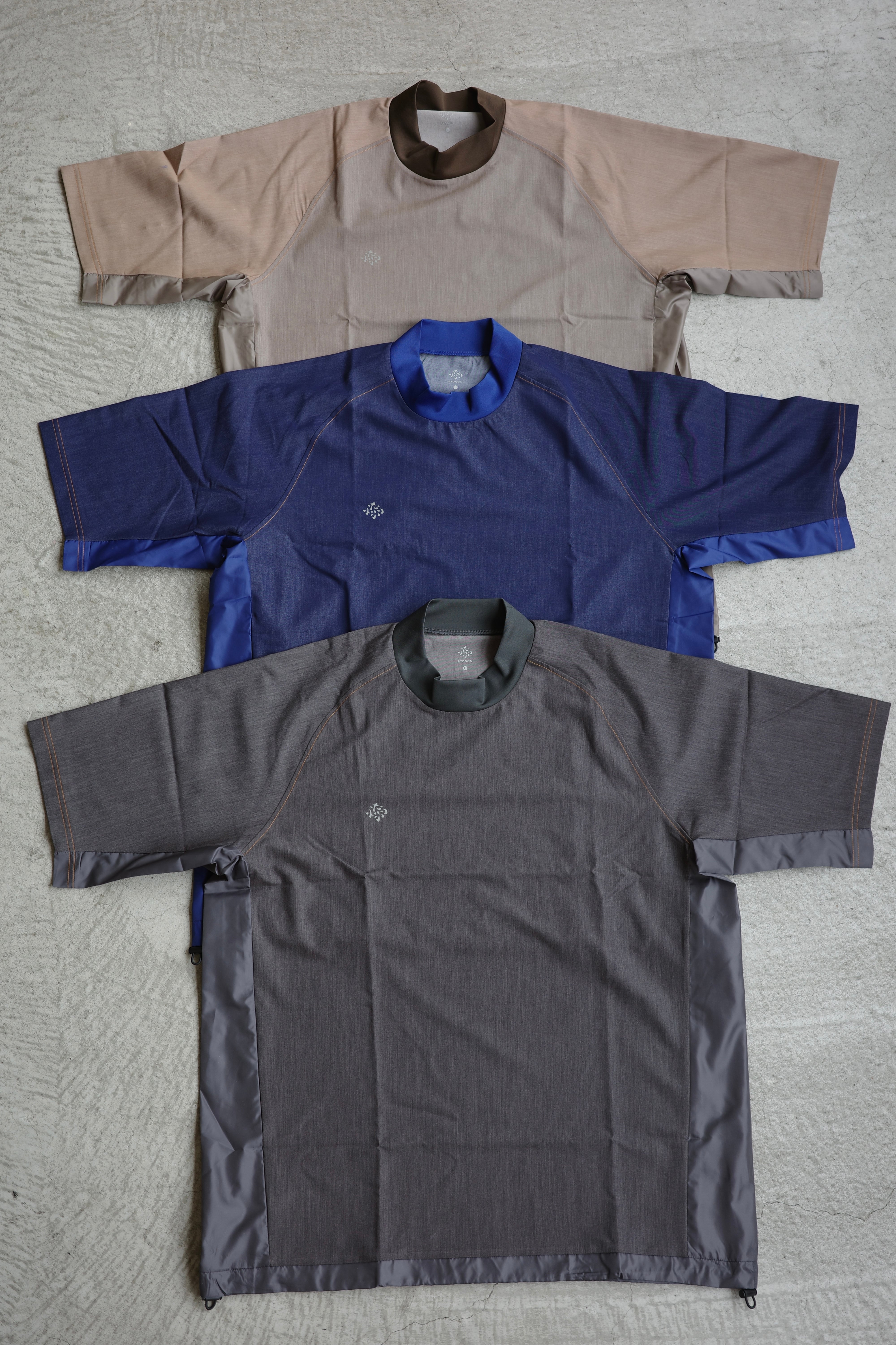 1stシーズンから続き、RYOGENの象徴とするディティールとなったMOCK NECK TEE。ランウェアとは一線を画す4種類の異素材を ドッキング。メインファブリックにはデニム風の生地に接触冷感を付与し、様々なアクティビティに耐えうるストレッチ性もあるスペシャルファブリックを採用。裾はドローコード仕様により 様々なシルエットを楽しむことが出来る。 品のあるモックネックの出で立ち、是非様々なシーンでご着用頂きたい。