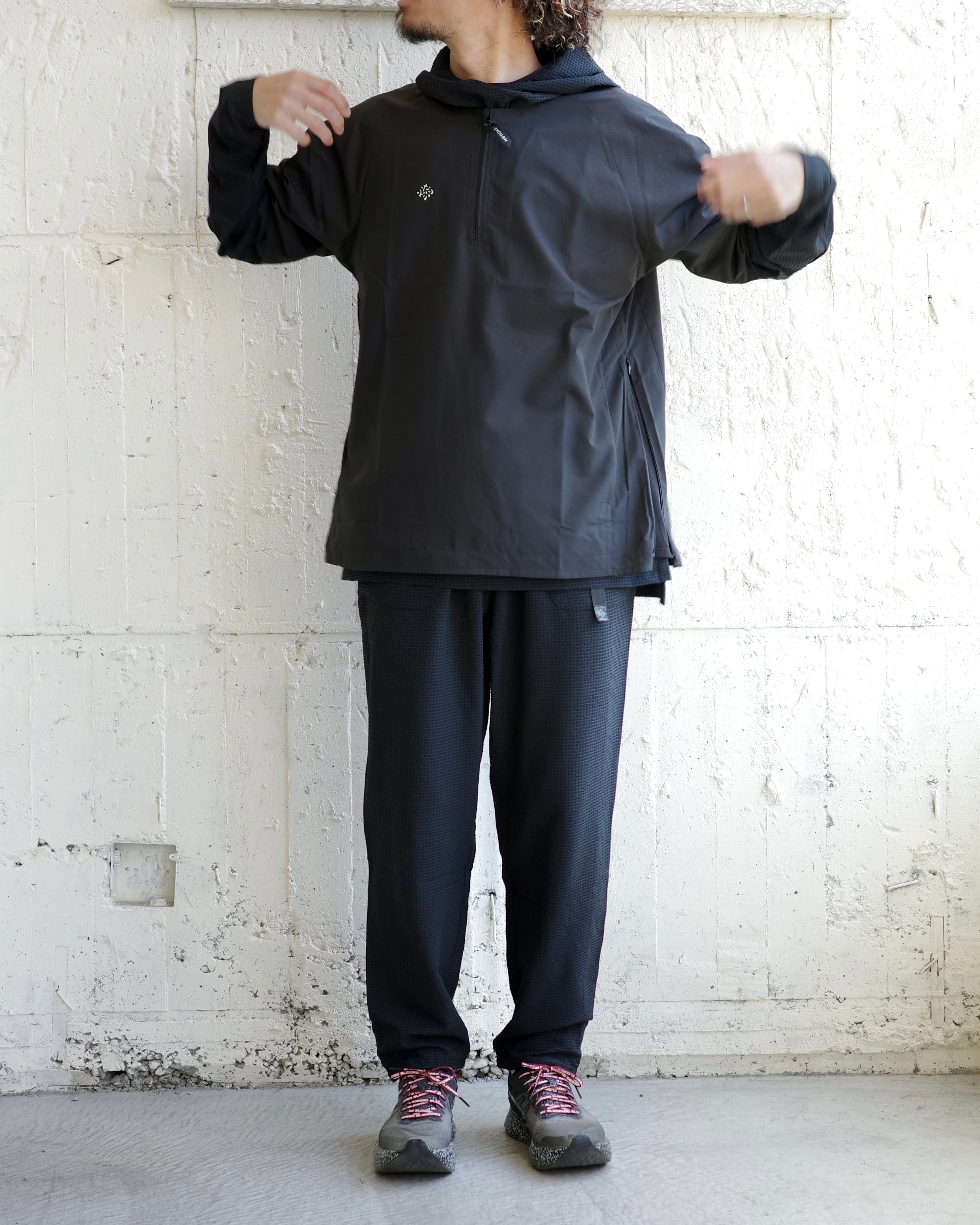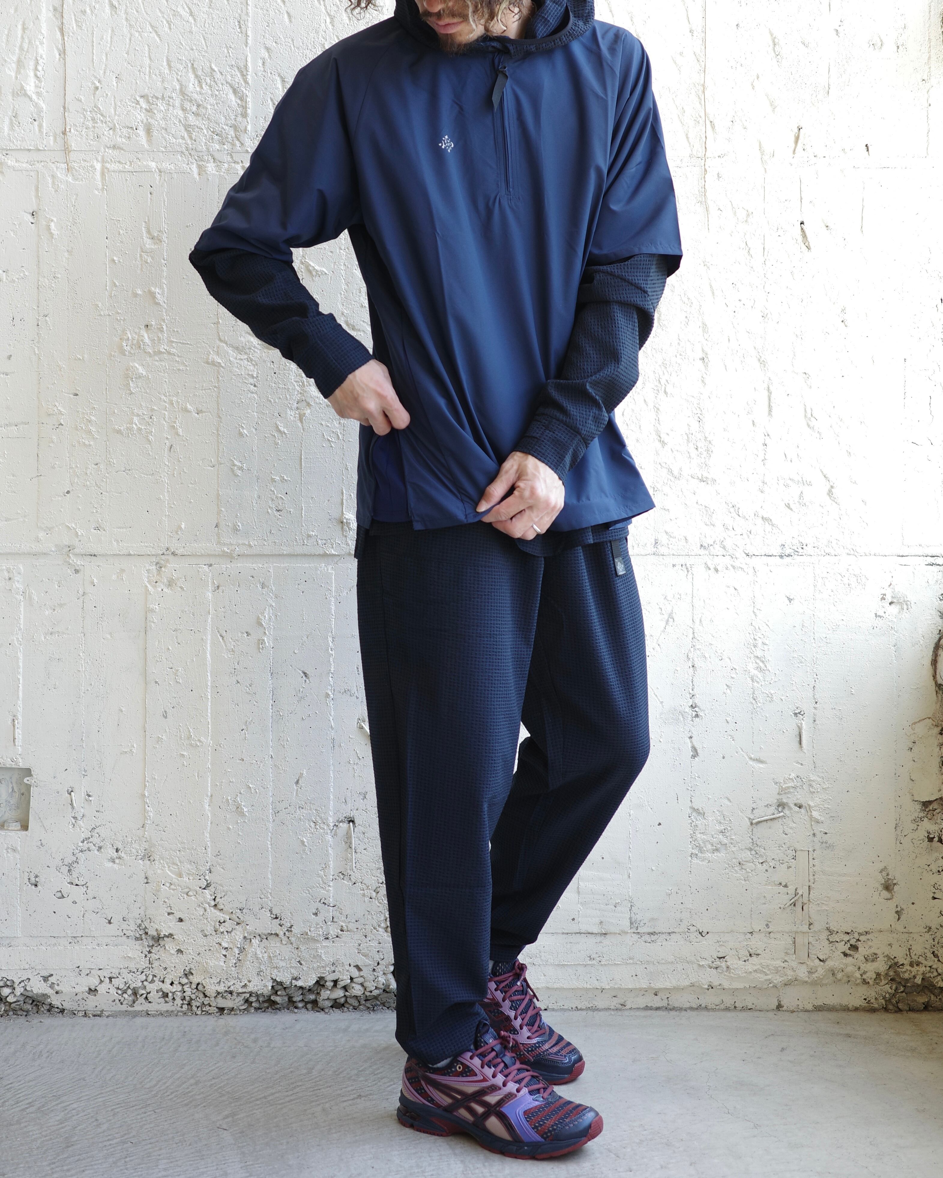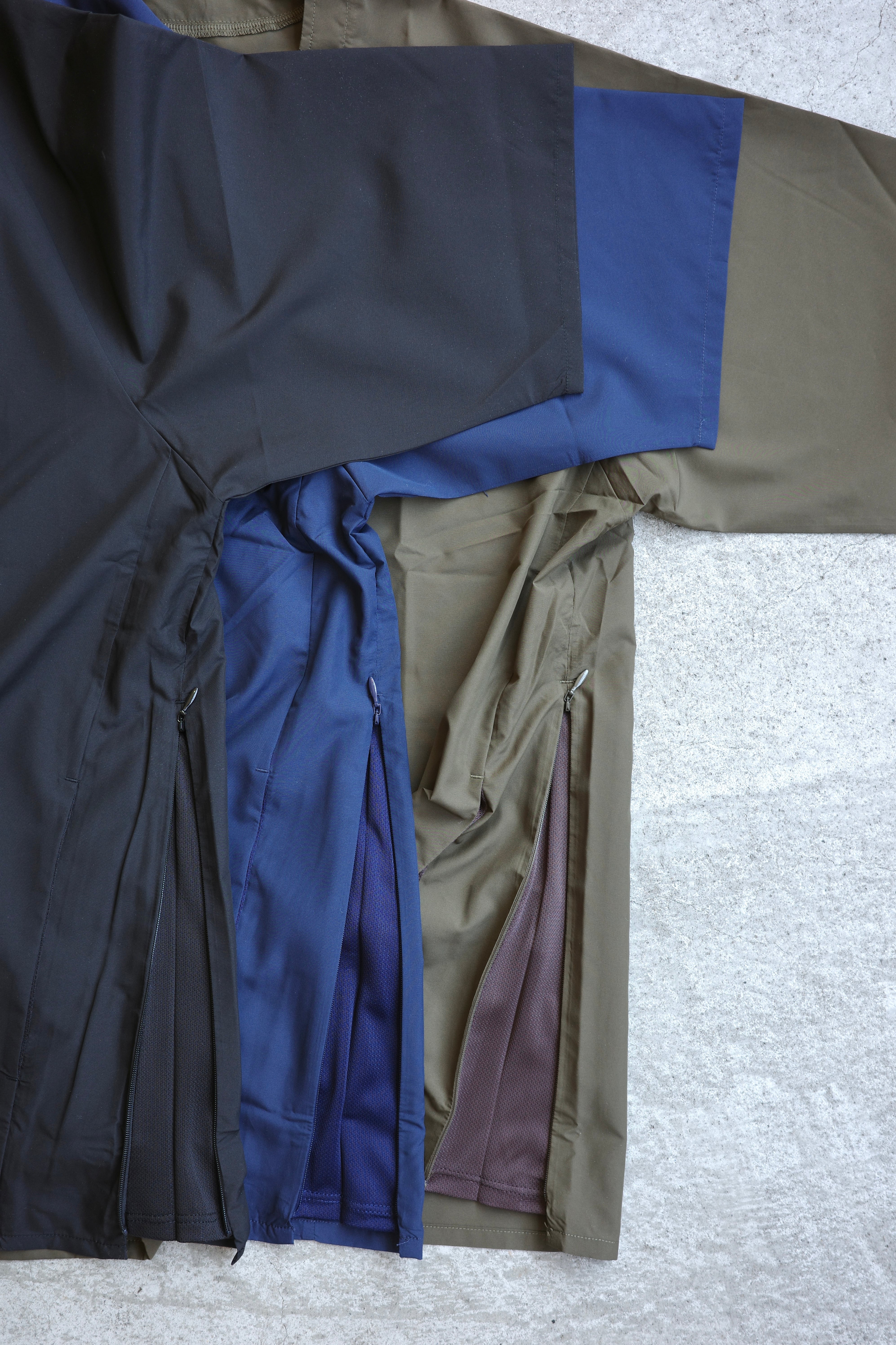 より優れた撥水性能を追求した結果、帝人の開発した雨蓑構造から着想を得た凸構造によって水滴を滑り落とし高い耐水性を維持し、内部にこもる蒸れを外に排出する透湿性にも優れているスペシャルファブリックを新たにを採用。ファスナーを閉めた際、引手が顎に当たるのを防ぐ共地のチンガードを追加。裾にステッチを入れることでポケット袋のはみ出しを防止。深めに入ったサイドスリットの開閉でベンチレーション代わりにもなる。