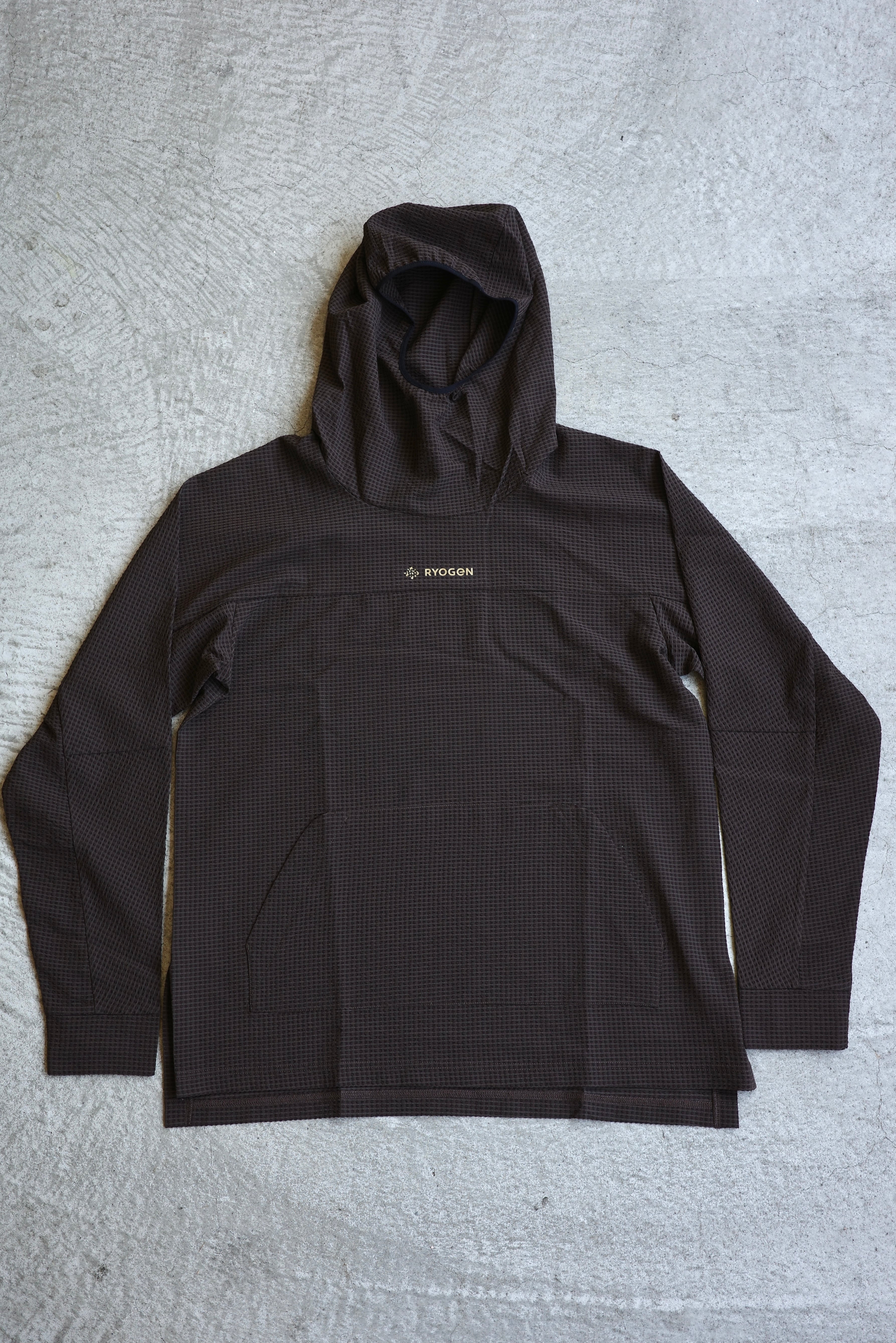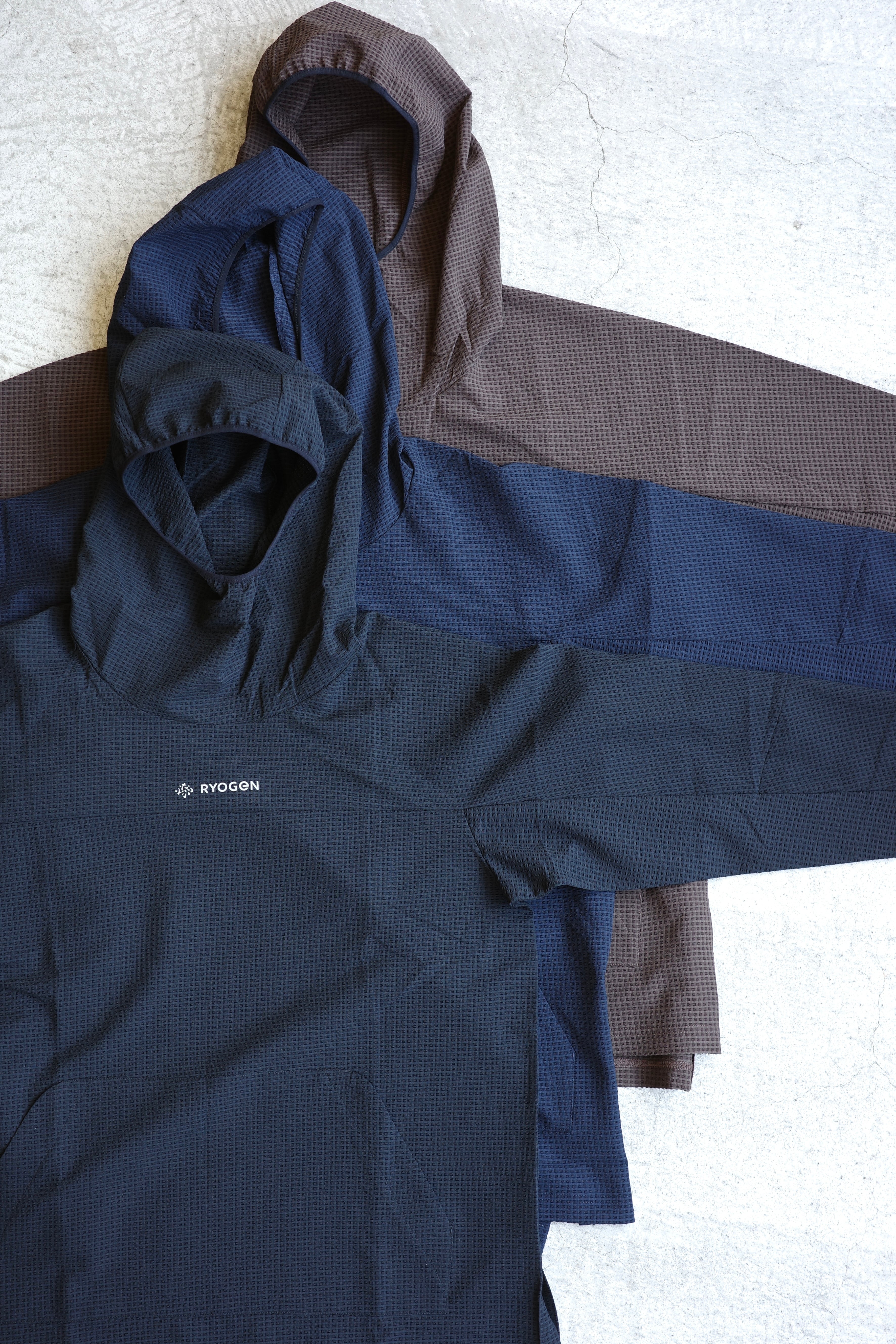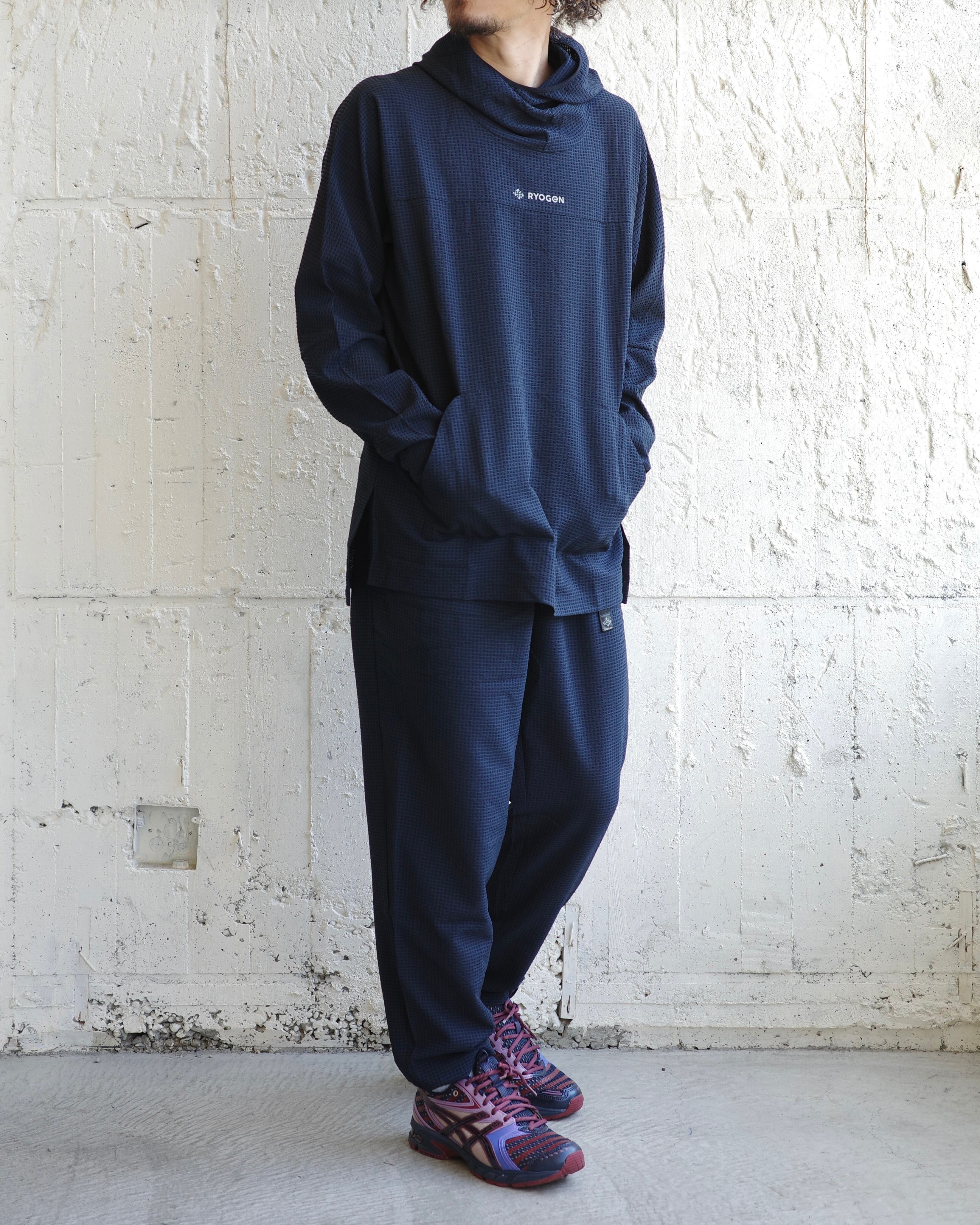 袖口にはサムホールや裾スリットなどRYOGENアイテムでは定番となったディティールを散りばめている。フードを被った時、脱いだ時、どちらも美しいシルエットになるよう計算されつくしたフード。