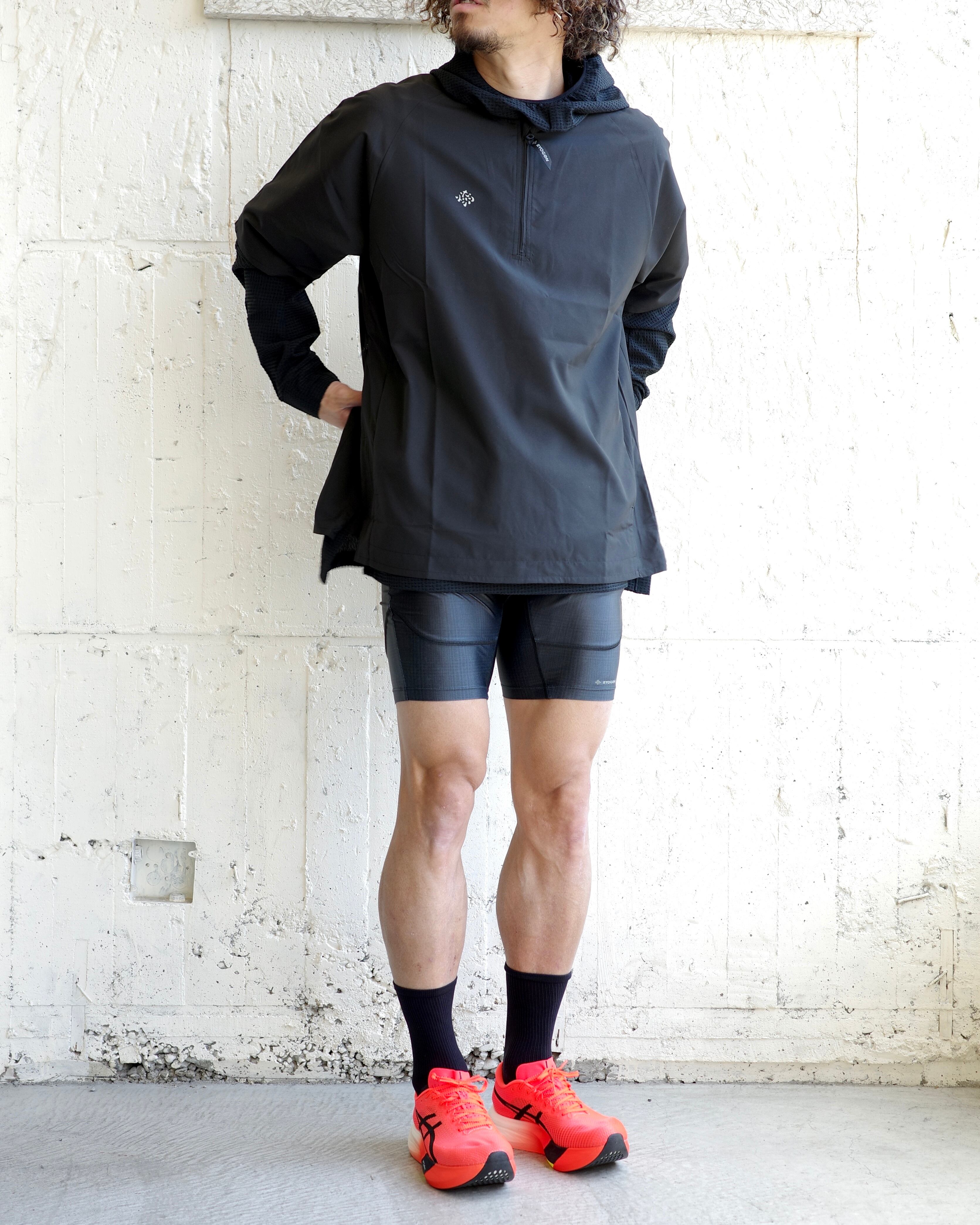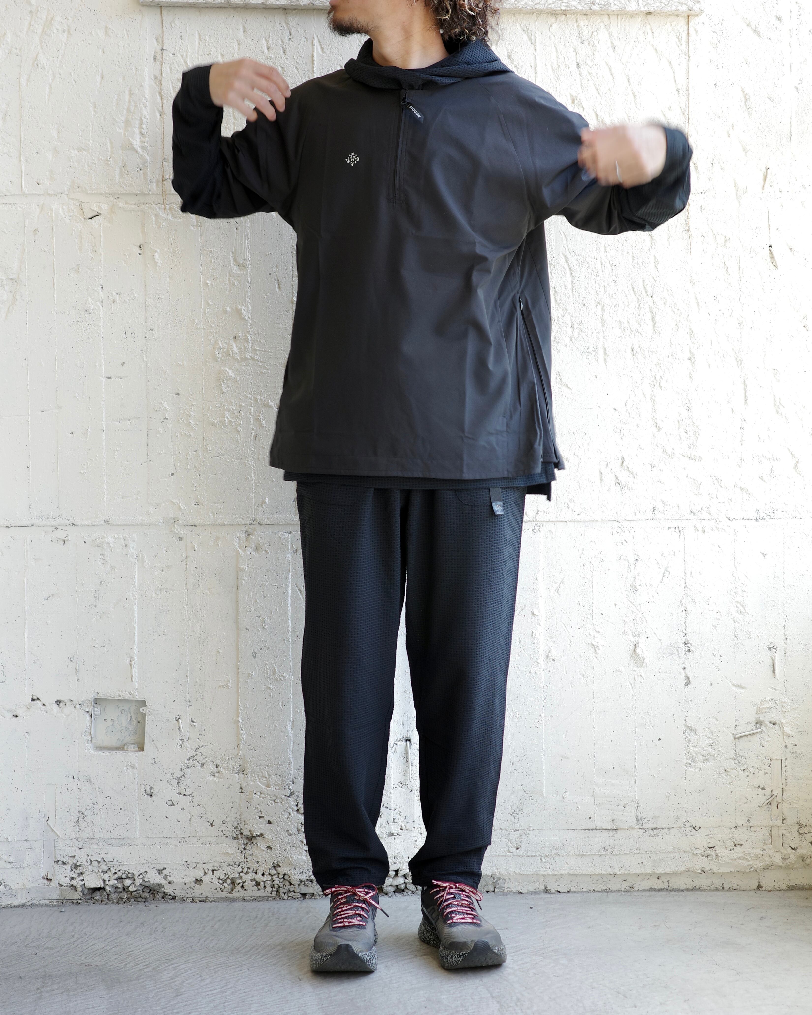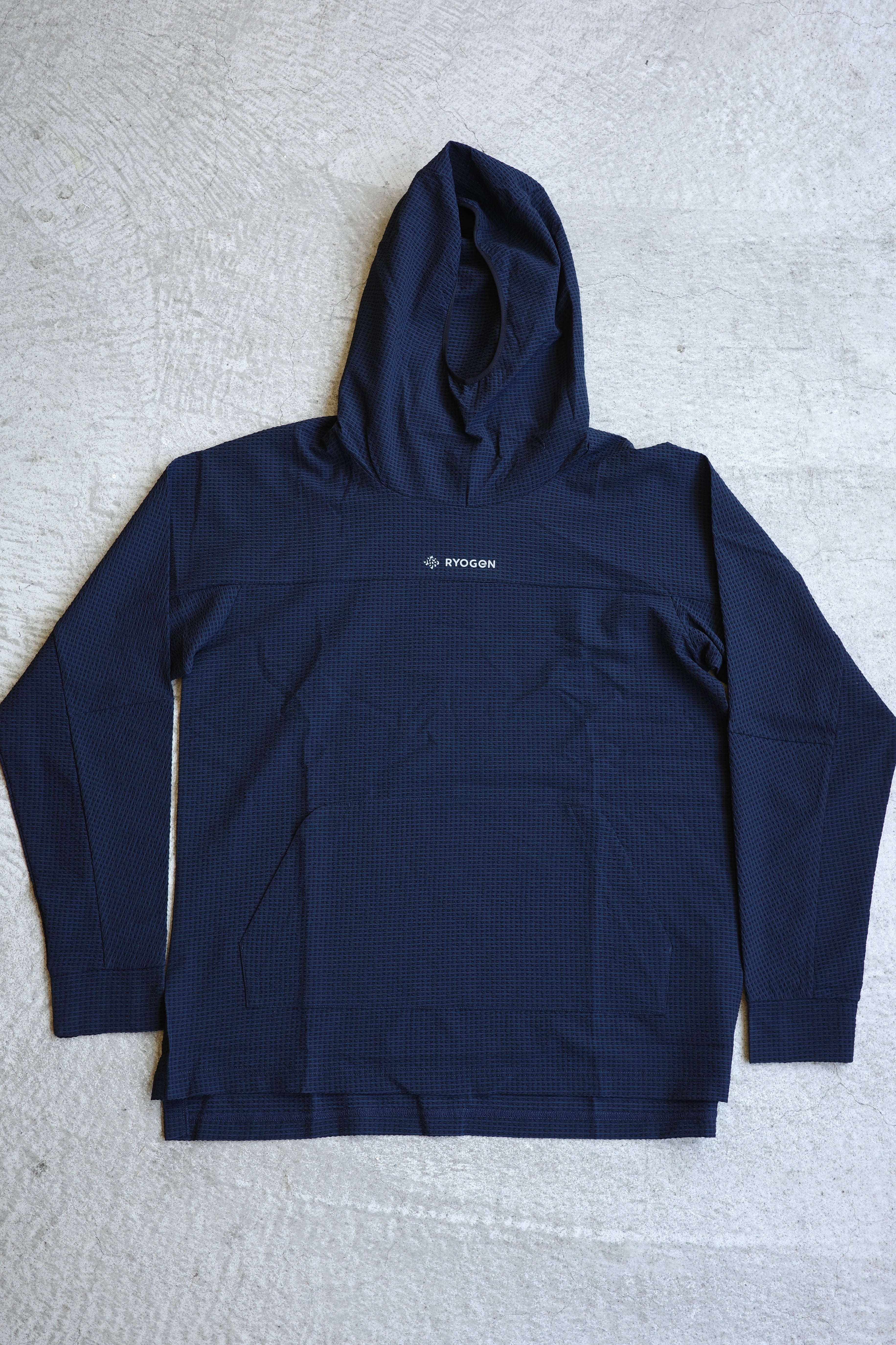 縦横にストレッチ性を持たせたPrimeflex糸を使用し、DotAir特有のメッシュ構造により通気性、軽量性、吸水速乾を付与したスペシャルファブリックで製作されたこちらのプルフーディー。