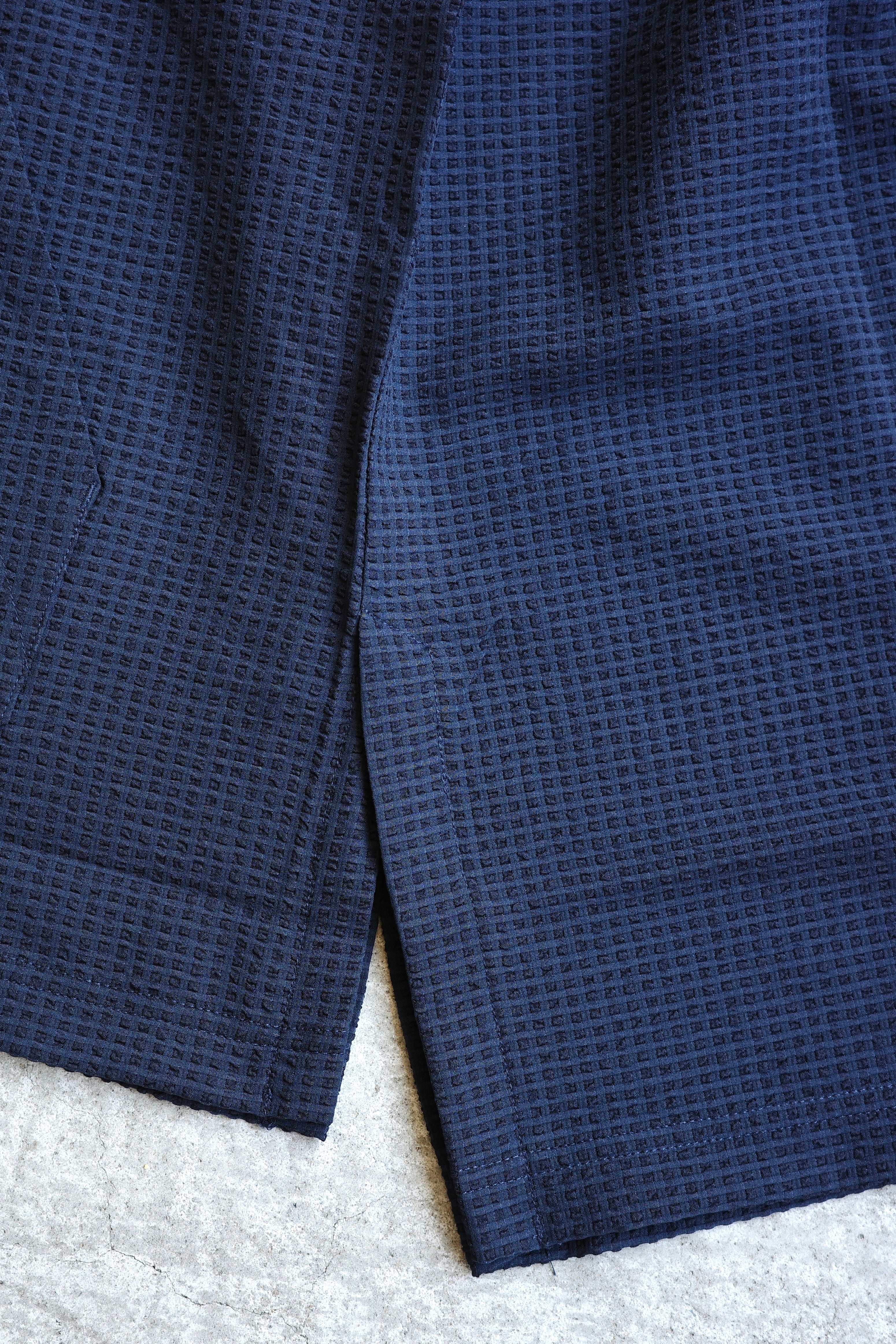 凹凸のあるシアサッカー素材は肌に接触する面積を抑えることでべた付かず快適な着心地を実現。