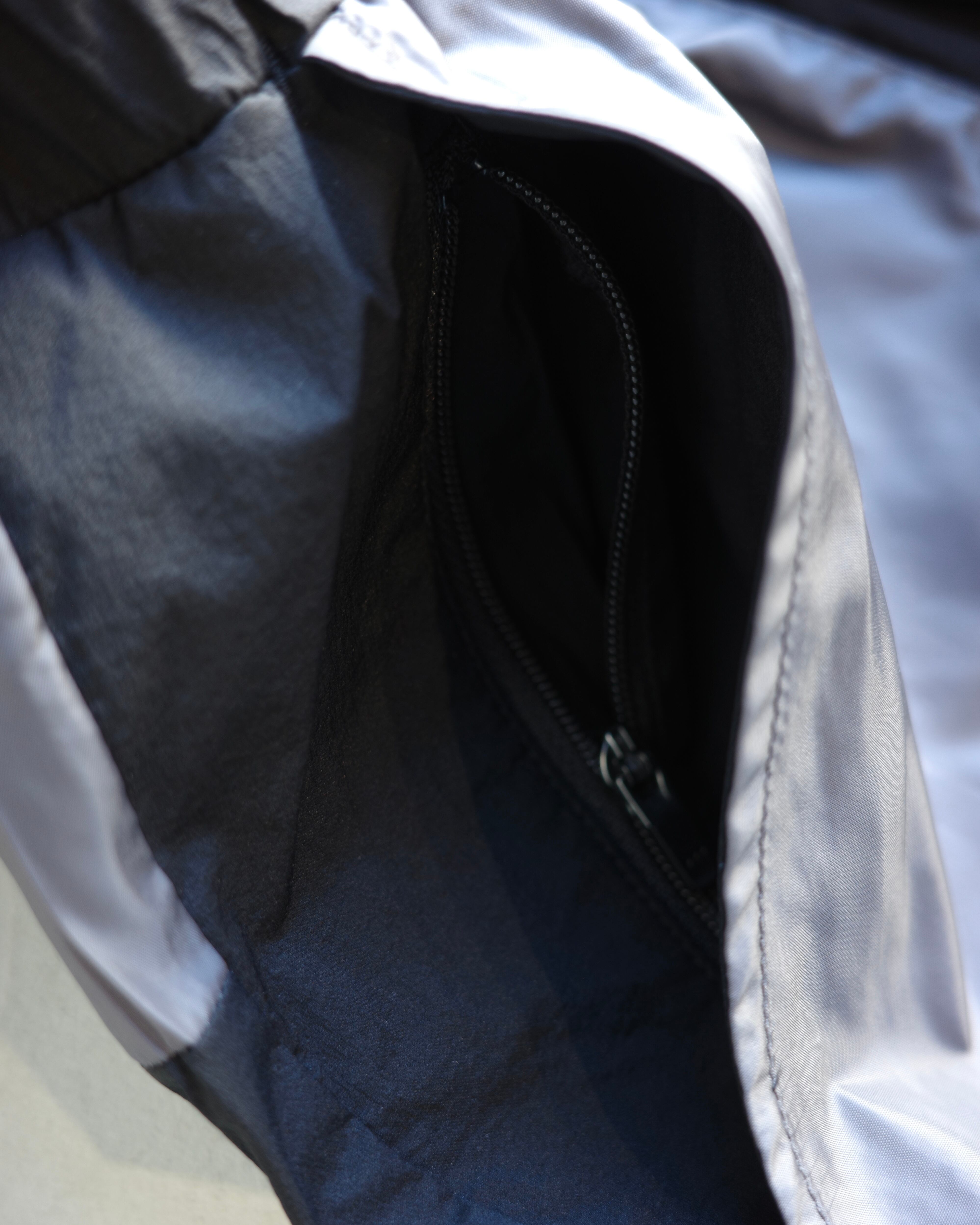センターバックには”揺れない”スマホ用ポケット、フロントのパッチポケットにはコンシールファスナーによりちょっとした小物の収納に便利。