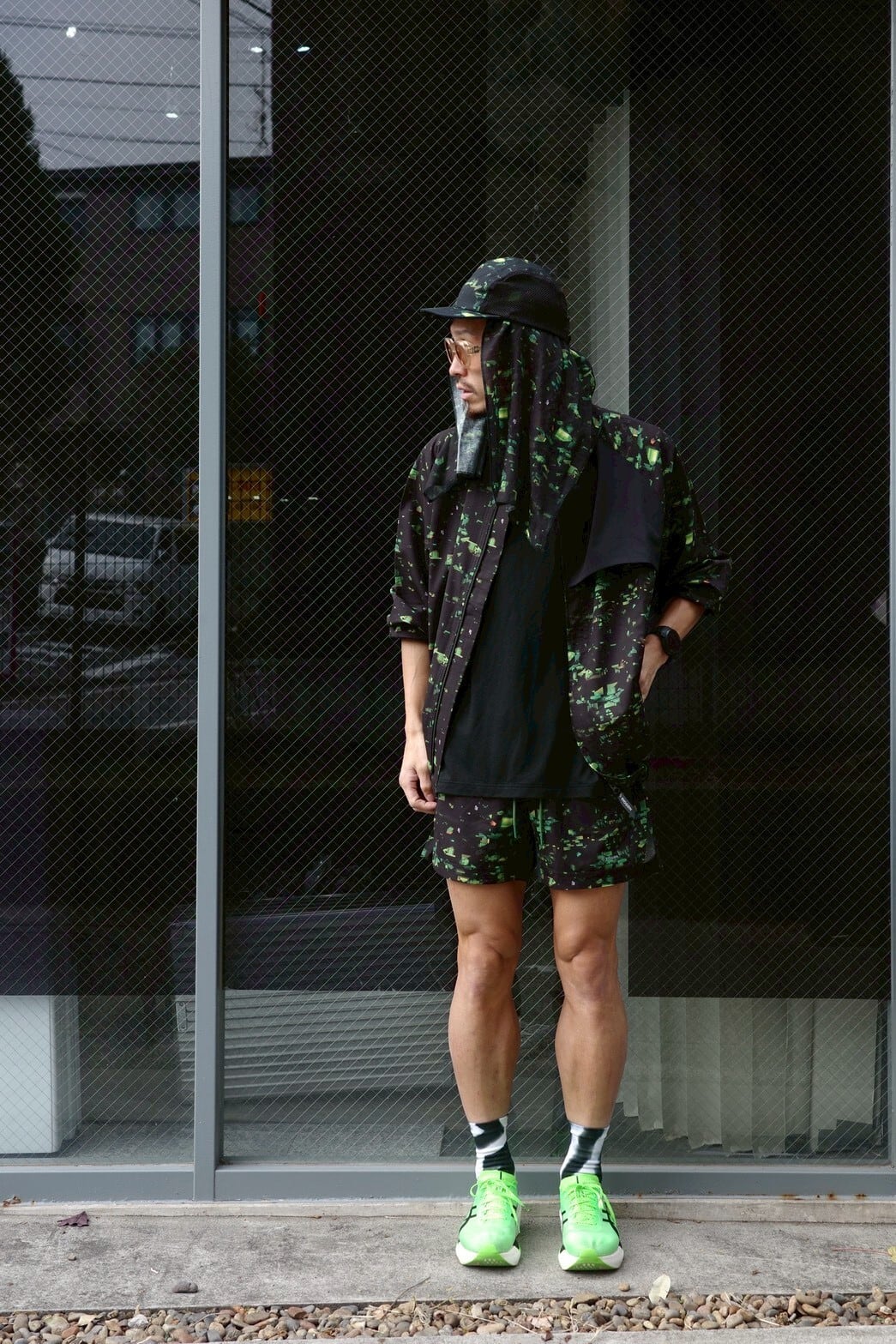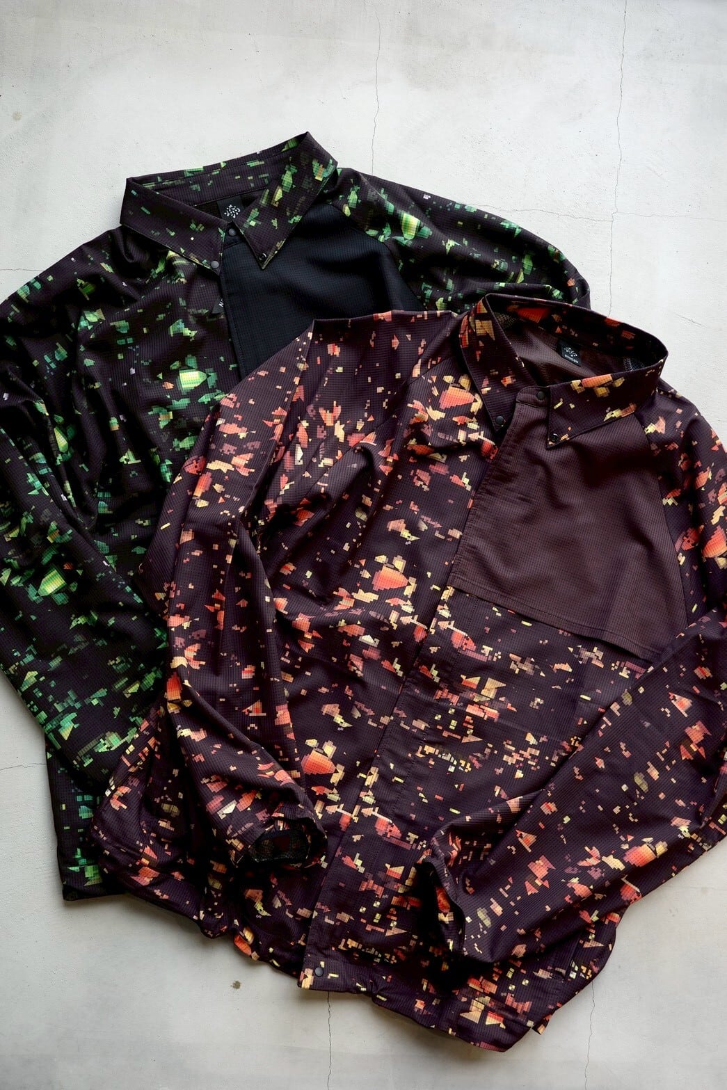 ブランドの世界観を一新する、ストリート感溢れるグラフィック〈NIGHT CAMO〉を全面に昇華プリントした軽量ジャケット。