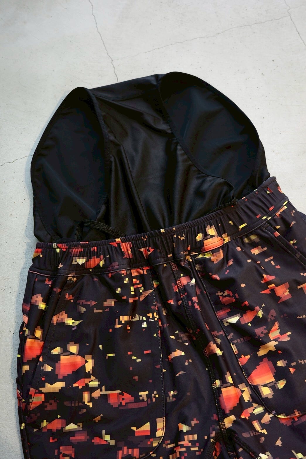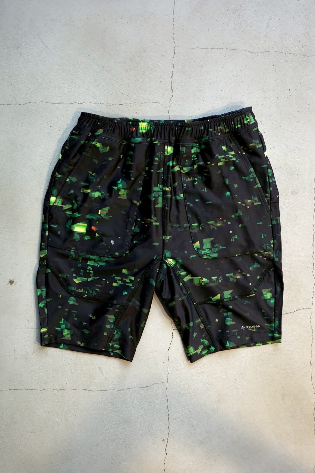 ブランドの世界観を一新する、ストリート感溢れるグラフィック〈NIGHT CAMO〉を全面に昇華プリントしたショートタイツ。