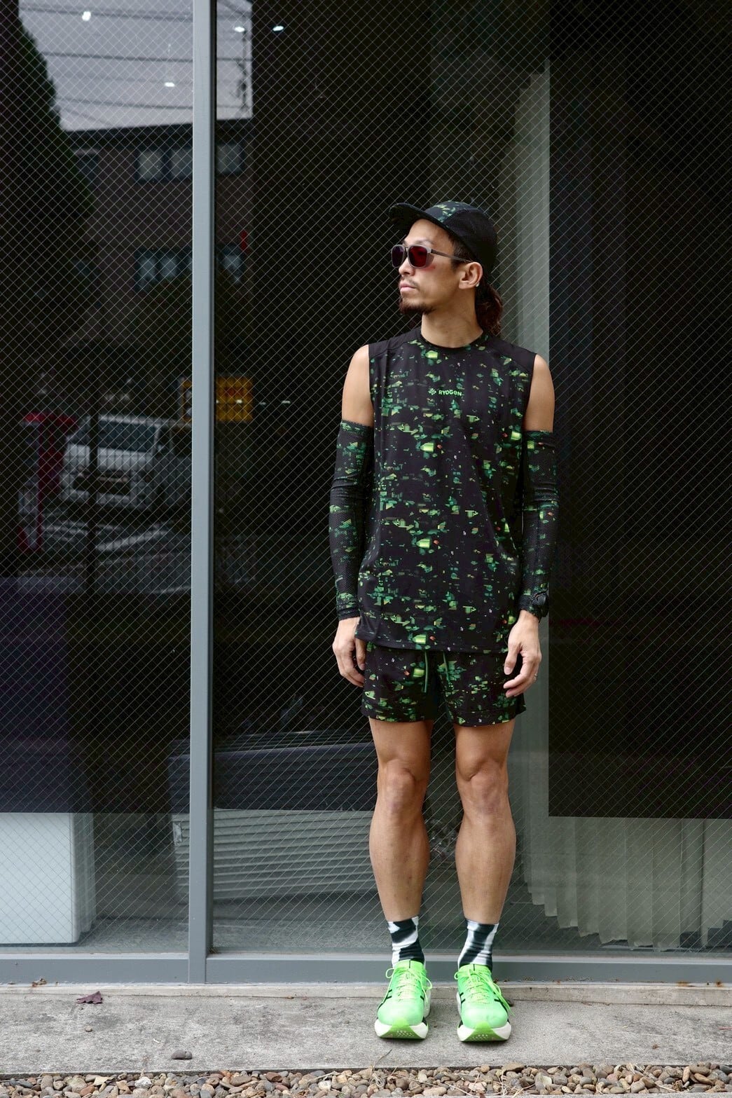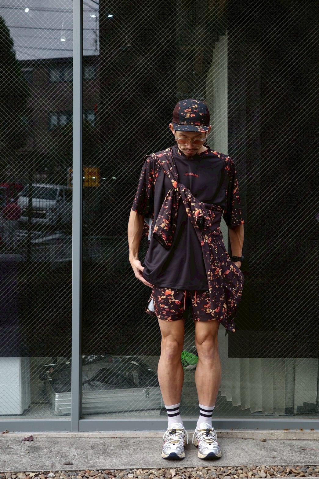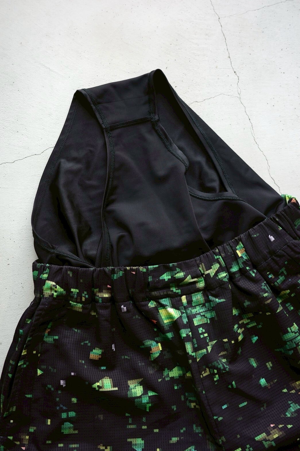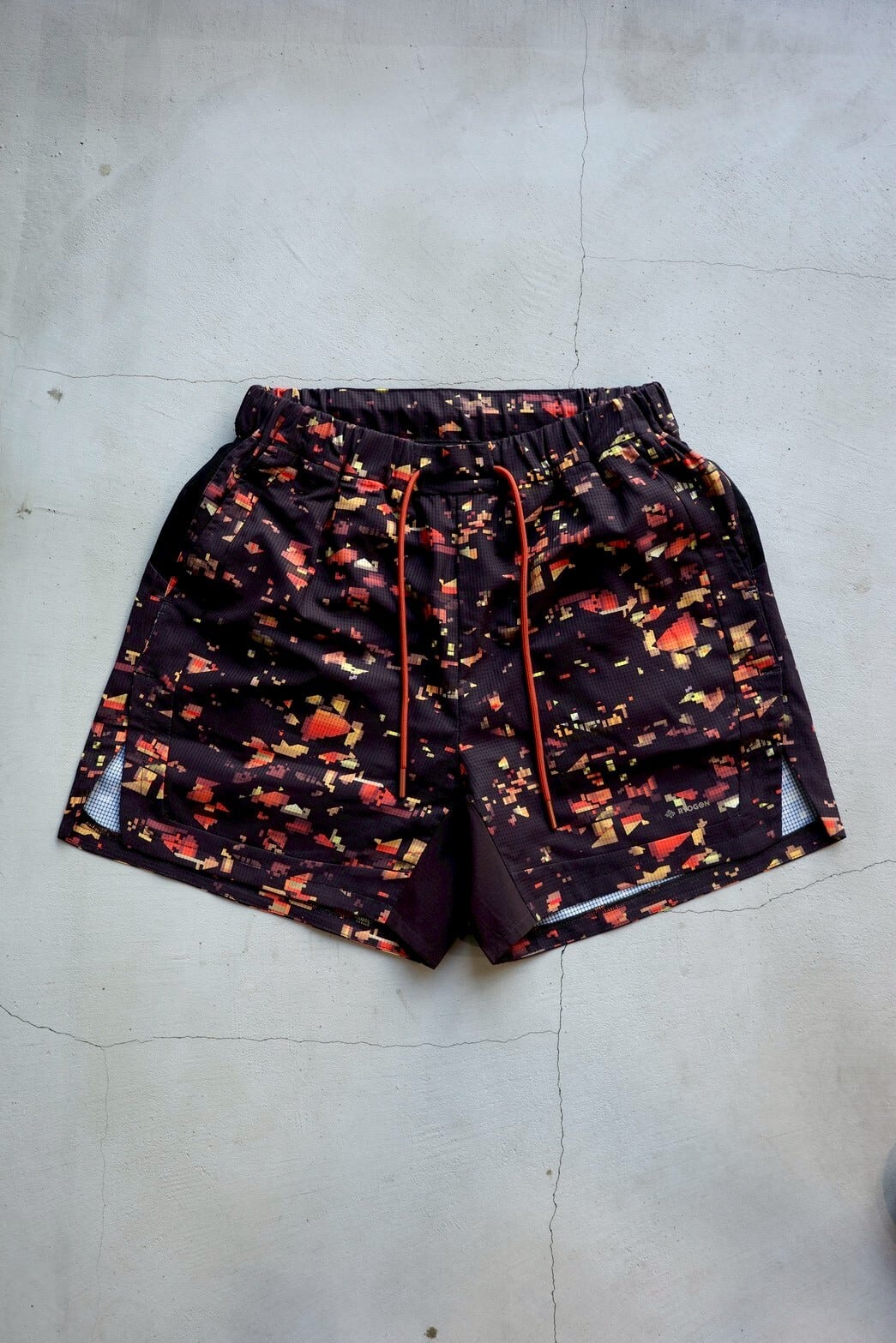 ブランドの世界観を一新する、ストリート感溢れるグラフィック〈NIGHT CAMO〉を全面に昇華プリントしたランニングショーツ。